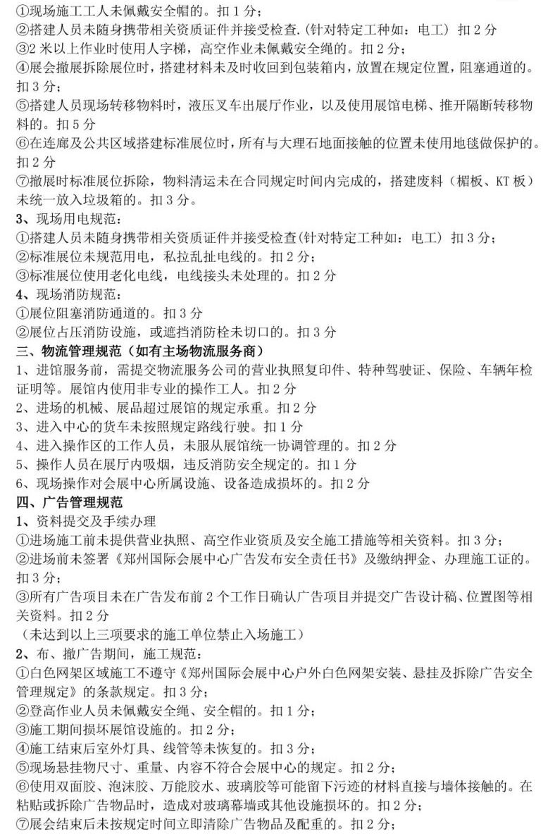 首頁服務(wù)指南下載中心文章詳情 文章詳情 主場管理規(guī)章制度及違約事項扣分標準 鄭州國際會展中心主場管理規(guī)章制度及違約事項扣分標準 《鄭州國際會展中心主場管理規(guī)章制度及違約事項扣分標準》文檔下載