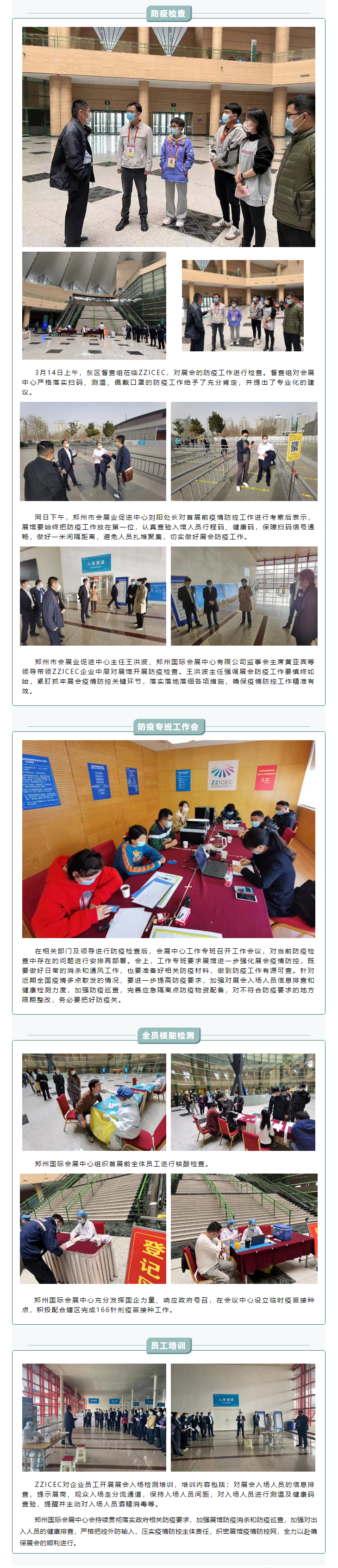 首頁新聞中心展會(huì)新聞文章詳情 文章詳情 復(fù)展倒計(jì)時(shí)!ZZICEC積極籌備中... 鄭州國際會(huì)展中心將在3月15日迎來“2022中部(鄭州)智能裝備制造業(yè)博覽會(huì)”,各相關(guān)部門對(duì)首展前防疫工作進(jìn)行了全面的檢查,同時(shí)加強(qiáng)了對(duì)企業(yè)員工保會(huì)服務(wù)培訓(xùn),為首場(chǎng)展會(huì)的順利啟幕保駕護(hù)航.... 鄭州國際會(huì)展中心將在3月15日迎來“2022中部(鄭州)智能裝備制造業(yè)博覽會(huì)”,各相關(guān)部門對(duì)首展前防疫工作進(jìn)行了全面的檢查,同時(shí)加強(qiáng)了對(duì)企業(yè)員工保會(huì)服務(wù)培訓(xùn),為首場(chǎng)展會(huì)的順利啟幕保駕護(hù)航....