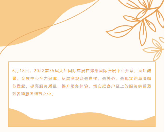 首頁新聞中心展會新聞文章詳情 文章詳情 用心服務每一展 6月18日,2022第35屆大河國際車展在鄭州國際會展中心開幕,面對酷暑,會展中心全力保障,從展商觀眾最直接、最關心、最現(xiàn)實的點滴細節(jié)做起,提高服務質量,提升服務體驗,切實把客戶至上的服務宗旨落到各項服務細節(jié)之中。