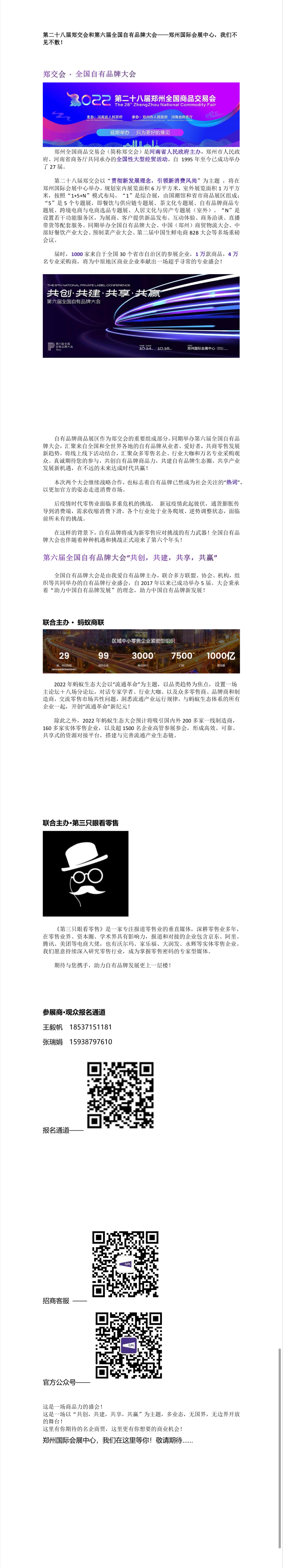 第二十八屆鄭交會(huì)和第六屆全國(guó)自有品牌大會(huì)——鄭州國(guó)際會(huì)展中心,我們不見(jiàn)不散!